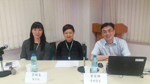 A enfermeira-especialista Kou Man Chi mostrou como usar ferramentas MMSE para avaliação de função cognitiva da população; Explicou como é feito o encaminhamento de pacientes com demência e que, em caso de suspeita, podem deslocar-se à Consulta Externa de Aconselhamento de Cuidados de Idosos ou à Consulta Externa de Rastreio de Demência para avaliação da função cognitiva pelos enfermeiros, no caso de detecção de anormalidade da função cognitiva, o paciente é encaminhado para o Centro de Avaliação e Tratamento da Demência para acompanhamento. O Centro de Avaliação e Tratamento da Demência é coorganizado pelos Serviços de Saúde e pelo Instituto de Acção Social e proporcionar em especial serviços de avaliação, diagnóstico, tratamento, educação, treino e assistência social de modo “one stop” aos pacientes.