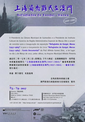 A exposição “Refugiados de Xangai. Macau (1937-1964)”, estará patente ao público entre 3 de Março e 1 de Setembro de 2017 no Arquivo Municipal Alfredo Pimenta da Câmara Municipal de Guimarães, depois de ter estado em exibição no Centro Científico e Cultural de Macau em Lisboa. A cooperação e partilha amigável de contributos entre as instituições envolvidas nestas exposições, são exemplo do crescente intercâmbio cultural luso-chinês.
