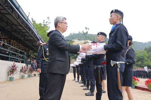 Na alocução, o Director da Escola frisou que os trabalhos das Forças de Segurança de Macau têm as suas especialidades, quando ocorre uma emergência, os instruendos são como elementos da linha de frente, por isso, devendo ir, sem qualquer hesitação, ao local de ocorrência e fornecendo a assistência mais adequada para quem precisa, resolvendo os problemas dos cidadãos. Os instruendos são pioneiros na manutenção da segurança pública e na proteção das vidas e dos bens dos cidadãos, devendo se orgulhar de ser elemento das Forças de Segurança. Ao escolherem a incorporação nas Forças de Segurança como seu percurso de vida profissional, é igualmente aceitar a missão sagrada da “Observância das Leis e Protecção dos Cidadãos” e “Vida por vida”, em quaisquer situações, sendo necessário empenhar-se no comprimento e nas responsabilidades inerentes a esta missão, só assim, irão responder às expectativas dos cidadãos, dos seus superiores e das suas famílias.