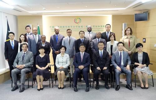 Ouvidas as apresentações da Secretária-Geral, Dra. Xu Yingzhen e dos membros do Secretariado Permanente sobre o Secretariado, o Director do Gabinete de Ligação, Dr. Zheng Xiaosong, procurou reafirmar que o Governo Central dá grande importância à construção de Macau como “Um Centro, Uma Plataforma”, apoiando no desenvolvimento da diversificação adequada da economia. Referiu que no decurso destes 15 anos desde o estabelecimento do Fórum de Macau, os Países membros do Fórum de Macau estabeleceram sinceros laços de cooperação, procurando o desenvolvimento comum e o Governo da RAEM concedeu grande apoio e desenvolveu incansáveis esforços para reforçar a cooperação intergovernamental, a cooperação no âmbito de promoção do comércio e do investimento, a promoção do intercâmbio humanístico, o aprofundamento da formação dos recursos humanos e a construção de “Uma Plataforma”, tendo sido obtidos resultados positivos. Sobre os trabalhos do Secretariado Permanente, o Director do Gabinete de Ligação, Dr. Zheng Xiaosong, apresentou cinco sugestões orientadoras: 1) Melhoramento do mecanismo de trabalho do Fórum de Macau e da construção da Plataforma; 2) Em articulação com a iniciativa “Uma Faixa, Uma Rota”, expandir a amplitude e a profundidade da cooperação económica e comercial entre a China e os Países de Língua Portuguesa; 3) Implementação e concretização efectiva das directivas consagradas nos “Plano de Acção” para a Cooperação Económica e Comercial” e no “Memorando de Entendimento sobre a Promoção da Cooperação da Capacidade Produtiva”; 4) Reforço do intercâmbio humanístico entre a China e os Países de Língua Portuguesa; 5) Apoio ao Governo da RAEM na construção, dentro do prazo previsto, do Complexo da Plataforma entre a China e os Países de Língua Portuguesa. O Director do Gabinete de Ligação, Dr. Zheng Xiaosong, assegurou o Secretariado que o Gabinete de Ligação do Governo Central na RAEM continuará, como tem vindo a fazer, a apoiar os trabalhos desenvolvidos pelo Secretariado Permanente do Fórum de Macau, exprimindo o desejo de poder melhorar o mecanismo do Fórum de Macau com o empenho de todos e enriquecer o conteúdo da cooperação entre a China e os Países de Língua Portuguesa, referindo ainda o apoio necessário a ser garantido ao Governo da RAEM no trabalho da construção de Macau como “Plataforma de Serviços para a Cooperação Comercial entre a China e os Países de Língua Portuguesa”, de modo a mais contribuir para a cooperação entre a China e os Países de Língua Portuguesa.