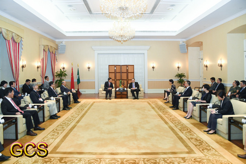 Chefe do Executivo, Chui Sai On recebe delegação do Instituto de Imprensa da Língua Chinesa para uma visita à Grande Baía de Guangdong, Hong Kong e Macau.