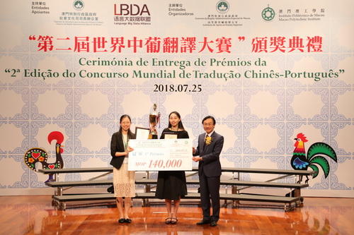 Para reforçar os intercâmbios académicos no campo de tradução chinês–português, formar talentos profissionais em tradução chinês- português e promover a aplicação dos resultados académicos e científicos mais recentes na área de tradução chinês-português em Macau, no Interior da China, e nos países lusófonos ao longo da área da iniciativa nacional da China “Uma Faixa, Uma Rota", a Cerimónia de Entrega de Prémios da 2.ª Edição do Concurso Mundial de Tradução Chinês–Português realizou-se com sucesso no IPM. O Concurso atraiu 117 equipas de 34 instituições de ensino superior internacionais. Foi a equipa da Universidade de Comunicação da China que ganhou o 1.º Prémio Geral, e a equipa do Instituto Politécnico de Macau, o 1.º lugar dos “Prémios Especiais para Equipas das Instituições de Ensino Superior de Macau”. O Prof. Dr. Huang Youyi, Vice-presidente Executivo da Associação de Tradutores da China, apontou que o Concurso Mundial de Tradução Chinês-Português é a única competição no campo de tradução chinês-português em todo o Mundo, elogiando que este Concurso tinha desempenhado um papel muito positivo para estimular e orientar os tradutores chinês-português a elevarem o seu nível de tradução, salientando ainda que, hoje em dia, tendo em conta os intercâmbios cada vez mais frequentes entre a China e os países da língua portuguesa, a tradução chinês-português torna-se cada vez mais importante do que em qualquer outra época da história, e isso traz um grande significado para o Concurso Mundial de Tradução.