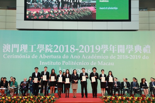 Para elogiar os alunos com excelentes desempenhos académicos e bom comportamento moral, na Cerimónia de Abertura do Ano Académico de 2018/2019, realizada no dia 29 de Agosto, o Instituto Politécnico de Macau atribuiu bolsas de estudo a mais de 500 alunos excelentes, de forma a reconhecer os seus esforços e resultados no ano passado e estimular o melhoramento contínuo no futuro; além disso, encorajou outros alunos para se dedicarem mais para obterem melhores resultados no estudo e boas qualidades morais, continuando o auto-aperfeiçoamento, de forma a contribuírem para a RAEM, a Grande Baía e a Pátria.