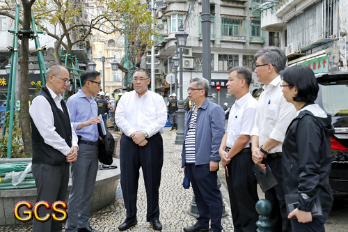 Chefe do Executivo, Chui Sai On, na zona do Pagode de Bazar, para conhecer o ponto da situação e o andamento da limpeza de detritos.