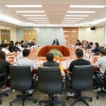Foto: O Secretário para a Economia e Finanças, Leong Vai Tac, reuniu-se hoje (dia 19) com os representantes dos Grupos de Nam Kwong e de Nam Yuen, bem como com os dos grossistas e retalhistas de cereais, óleos alimentares, água engarrafada e produtos de petróleo de Macau, no intuito de os agradecer pelos apoios prestados ao Governo no combate ao tufão “Mangkhut”.