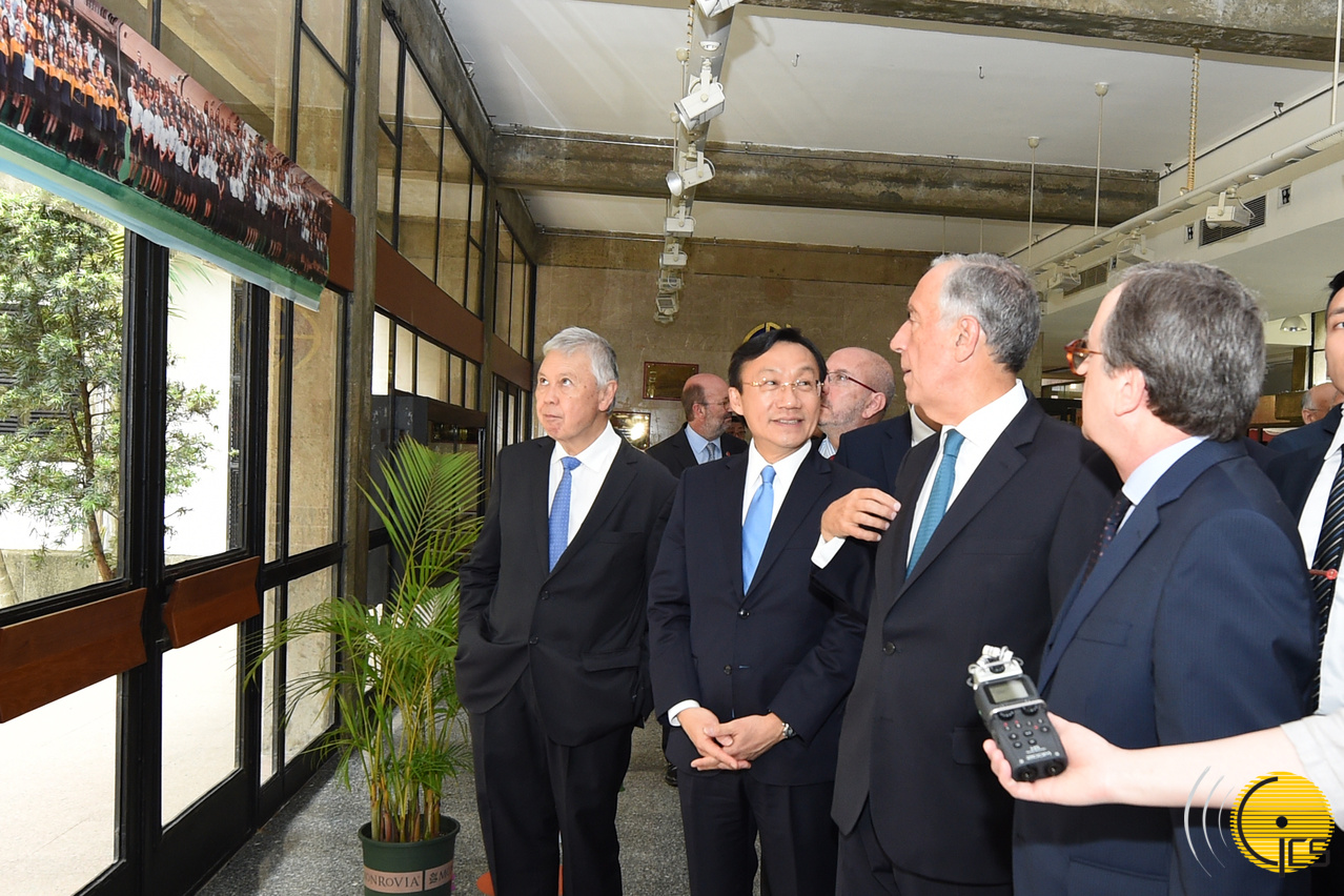 Presidente da República Portuguesa, Marcelo Rebelo de Sousa, visita a Escola Portuguesa de Macau, acompanhado pelo secretário para os Assuntos Sociais e Cultura do Governo da Região Administrativa Especial de Macau, Alexis Tam.