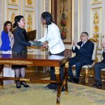 Chefe do Executivo do Governo da Região Administrativa Especial de Macau (RAEM), Chui Sai On, e ministro dos Negócios Estrangeiros de Portugal, Augusto Santos Silva, testemunham a cerimónia de assinatura de acordo e memorando de entendimento, no âmbito da 6.ª reunião da Comissão Mista Macau-Portugal.