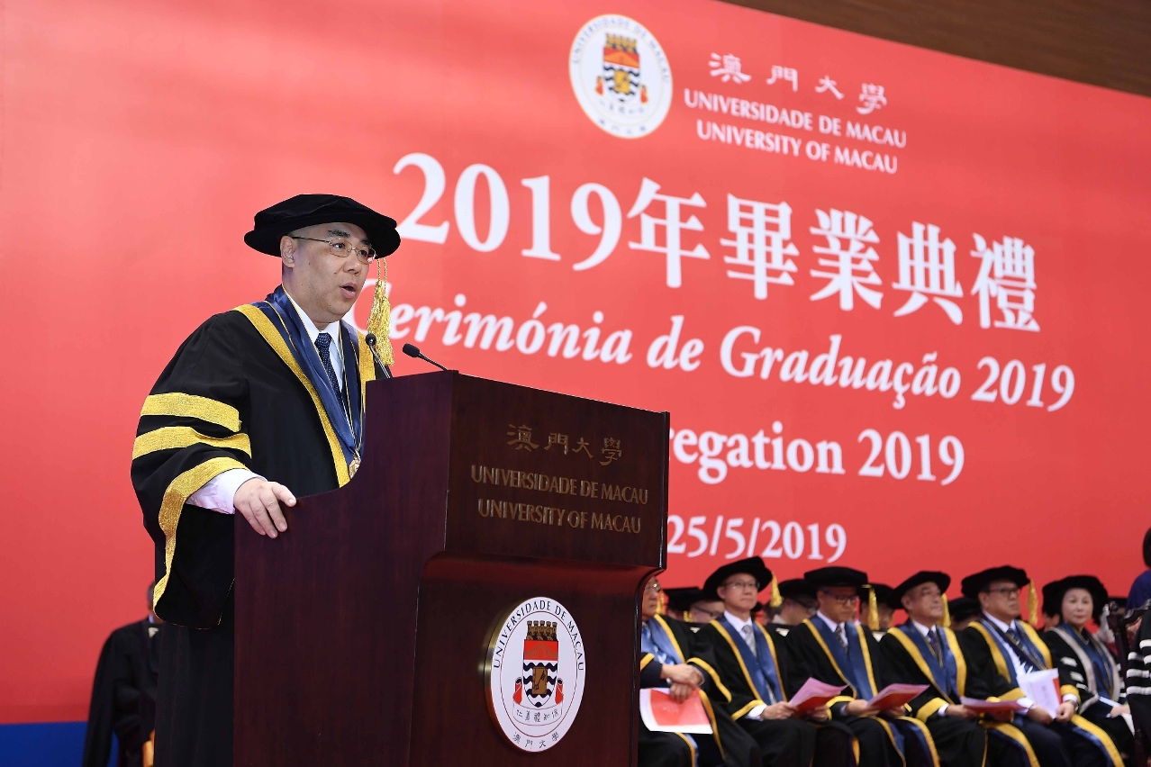 The University of Macau (UM) held the Congregation 2019 today (26 May). Macao SAR Chief Executive and UM Chancellor Chui Sai On praised the university for nurturing innovative graduates with global vision and producing fruitful research results to support the economic diversification and sustainable development of Macao through an outstanding faculty team.