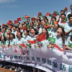 A delegação de visita e aprendizagem «Caminhar juntos na Nova Era» canta a música "Eu e minha Pátria" , no Parque Nacional da Floresta de Saihanba, na província de Hebei.