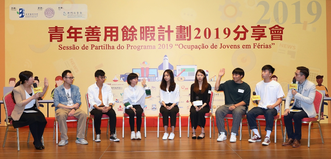 Foi concluído, com sucesso, o Programa “Ocupação de Jovens em Férias 2019”, organizado pela Direcção dos Serviços de Educação e Juventude (DSEJ) e realizado pela Associação dos Antigos Alunos de Macau do Programa da Universidade de Tsinghua com o apoio do Centro de Ciência de Macau, S.A. e a participação e promoção conjunta de 38 serviços públicos e instituições particulares de Macau. Neste âmbito, a DSEJ efectuou, no dia 17 de Agosto (sábado), pelas 15h00, no Centro de Ciência de Macau, uma sessão de partilha, que contou com a presença da subdirectora da DSEJ, substituta, Cheong Man Fai e dos representantes dos diversos serviços públicos e instituições particulares.