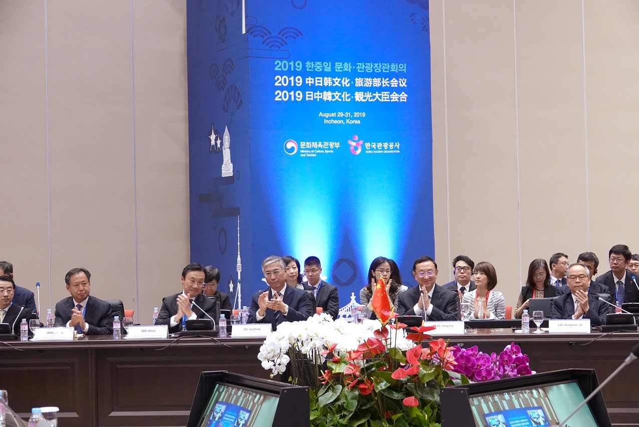 Nodecorrer da reunião,o Ministro da Cultura, Desporto e Turismoda Coreia do Sul, Park Yang-woo,o Ministroda Educação, Cultura, Desporto, Ciência e Tecnologia do Japão, Shibayama MasahikoeoMinistro das Terras, Infra-estruturas,Transportes e Turismo do Japão,Keiichii Ishiiexpressaram o desejo de reforçar aintegração entreos sectores decultura e turismo, promover o desenvolvimento das indústrias culturais,acelerara criação das“cidadesculturais daÁsia Oriental”e o intercâmbio entre as cidades. Aproveitandoaorganização dos Jogos Olímpicos, JogosOlímpicos do Inverno eParalímpicos,pela China,Japão e Coreia do Sul,promover o intercâmbio e desenvolvimentocultural e turístico dostrês países,incrementar a cooperação na salvaguarda e divulgação do patrimóniocultural material e imateral, criar novos meios de intercâmbiofacilitando a aprendizagem mútua entre osjovens,artistas e quadros culturais, reforçara formação paraos profissionais do turismoe,através da cooperação trilateral em turismo,é possívelfomentar a estabilidade,paze prosperidadeda região nordeste daÁsia.