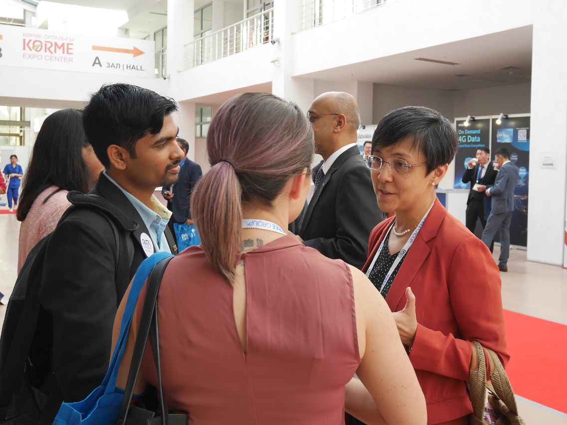 Maria Helena de Senna Fernandes, a par com a chefe do Departamento de Promoção Turística da DST, Betty Fok, a chefe do Departamento de Comunicação e Relações Externas da DST, Kathy Iong, e representantes da indústria hoteleira e de agências de viagens de Macau estão na capital do Cazaquistão, para participar na PATA Travel Mart. A DST ergueu um expositor na feira, servindo ao mesmo tempo como plataforma para os operadores locais trocarem ideias e realizarem contactos de negócios com os seus parceiros do exterior, promovendo as festividades e os eventos e os novos pontos turísticos de Macau.