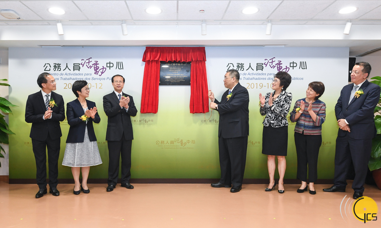Chefe do Executivo, Chui Sai On, e convidados presidem cerimónia de inauguração do Centro de Actividades para os Trabalhadores dos Serviços Públicos