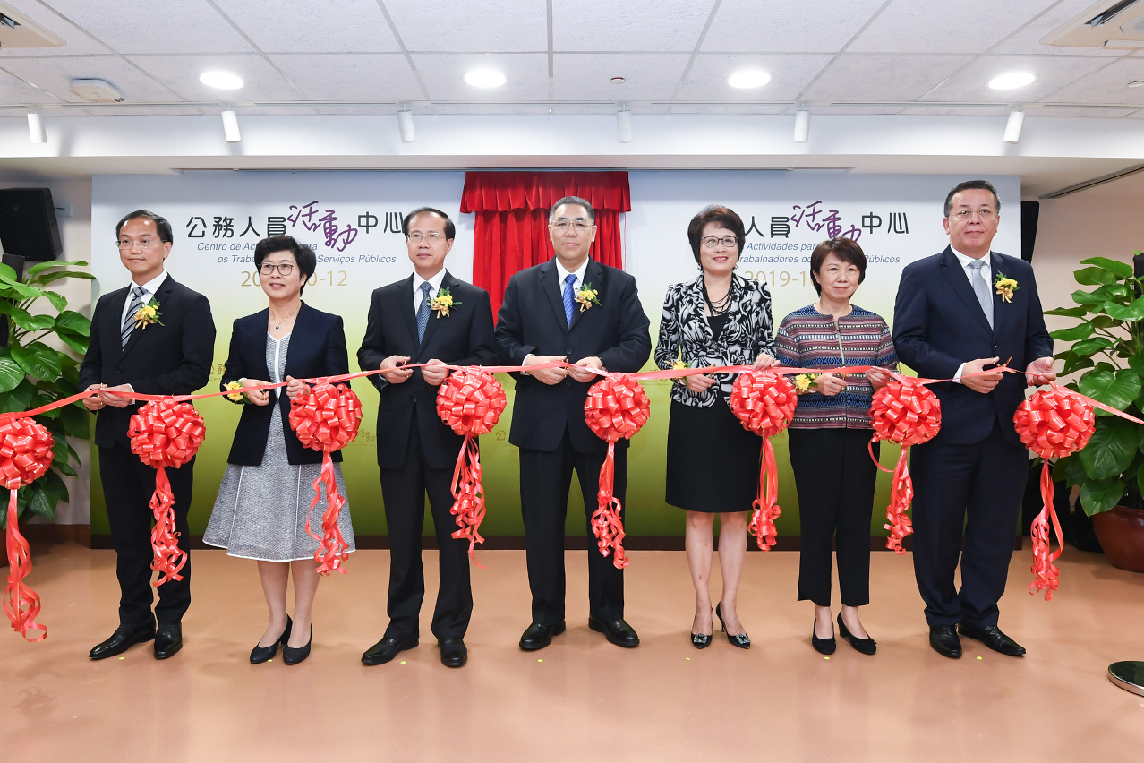 No intuito de proporcionar mais espaço para a realização de actividades e serviços destinados aos trabalhadores dos serviços públicos, a Direcção dos Serviços de Administração e Função Pública (SAFP) inaugura na Taipa o “Centro de Actividades para os Trabalhadores dos Serviços Públicos”. A cerimónia de inauguração, que teve início hoje, dia 12, ao meio-dia, presidida pelo Chefe do Executivo, Chui Sai On, contou com a presença do Director do Gabinete de Ligação do Governo Central na RAEM, Fu Ziying, da Comissária-adjunta do Comissariado do Ministério dos Negócios Estrangeiros da RPC na RAEM, Wang Dong, da Secretária para a Administração e Justiça, Chan Hoi Fan, da Chefe do Gabinete da Secretária para a Administração e Justiça, Iao Man Leng, do Director do SAFP, Kou Peng Kuan, do Presidente do Conselho de Administração do Instituto para os Assuntos Municipais, José Tavares, bem como dos representantes de diversos Serviços Públicos e associações, num total de dezenas de participantes e convidados.