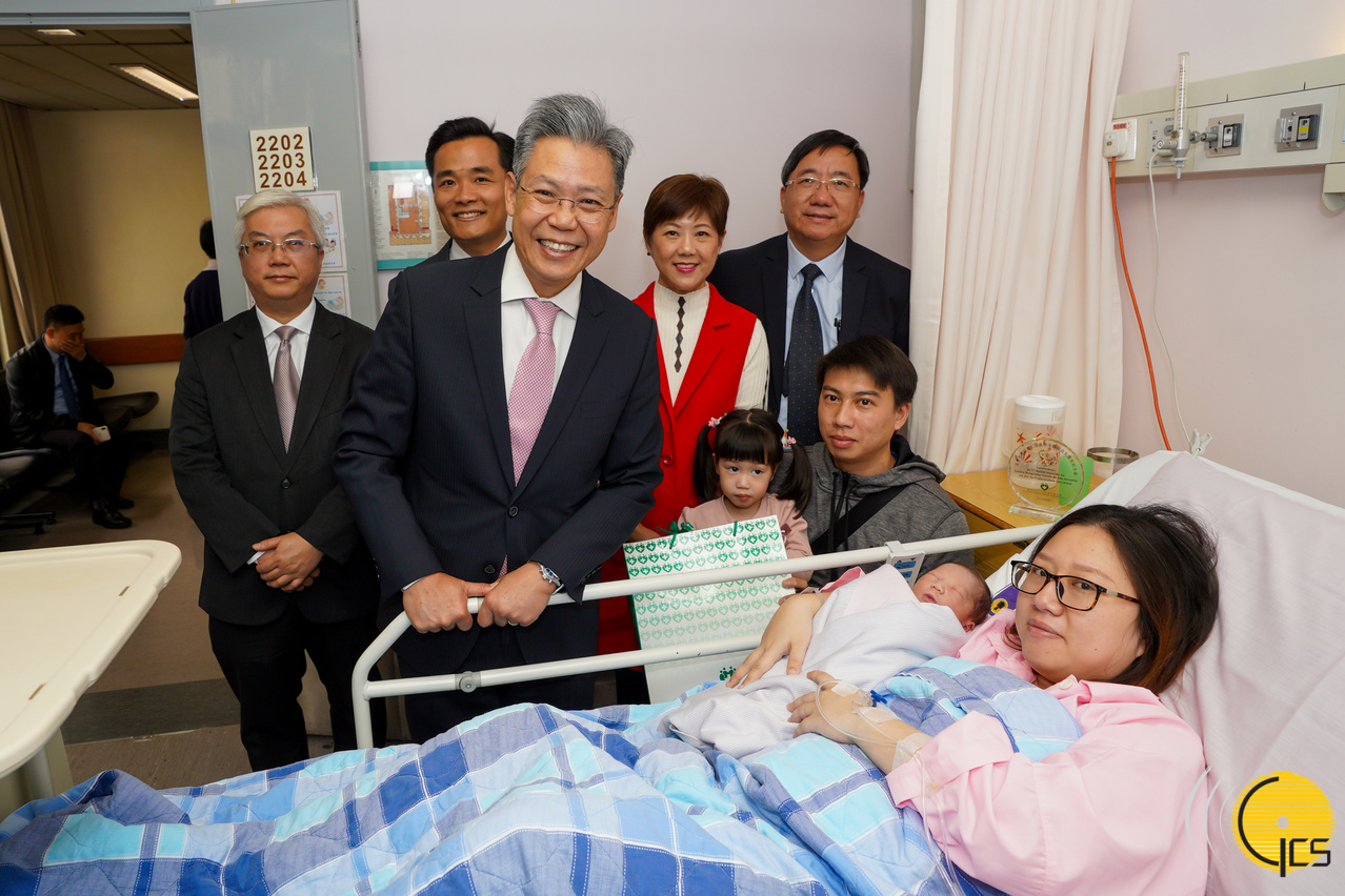 Director do Centro Hospitalar Conde de São Januário, Kuok Cheong U, visita e oferece presentes ao primeiro bebé do ano de 2020 no Hospital Kiang Wu.