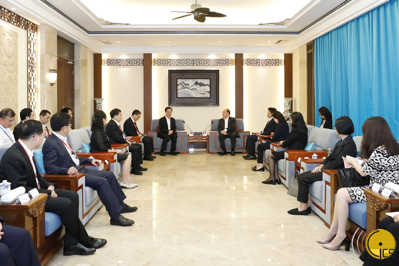 Chefe do Executivo, Ho Iat Seng, num encontro com o governador da Província de Fujian, Wang Ning, na cidade de Sanya da Província de Hainão.