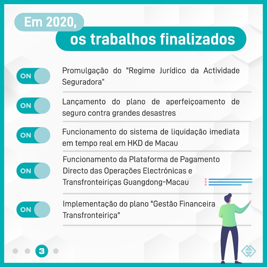 Mediante os trabalhos de ajustamento de afectação de activos, a Reserva Financeira registou contrapartidas positivas na atmosfera de investimento adversa, evidenciando no programa de investimento uma certa resiliência face aos riscos. No entanto, devido às incertezas verificadas no mercado financeiro internacional, a AMCM continuará a adoptar os princípios de “segurança, eficácia e estabilidade”, aperfeiçoando de modo constante o estabelecimento do regime de gestão de investimento. Além disso, com vista a prevenir o impacto na estabilidade financeira local provocado pela epidemia, foram exigidas a todas as instituições financeiras de Macau a avaliação dos riscos das suas actividades e testes de pressão.