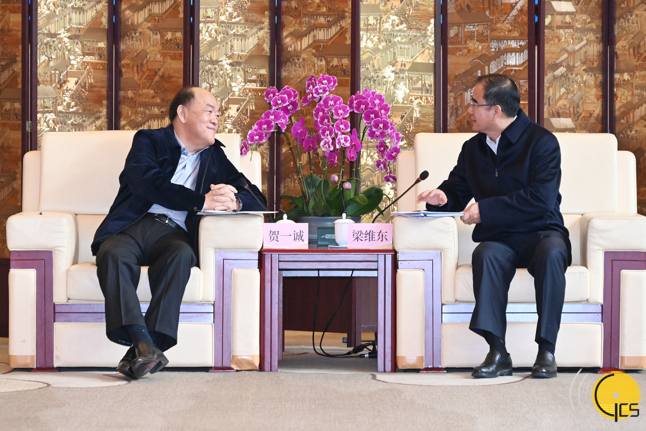 Chefe do Executivo, Ho Iat Seng, num encontro com o secretário do Comité do Partido Comunista da cidade de Dongguan e presidente do Comité Permanente da Assembleia Popular de Dongguan, Liang Weidong.