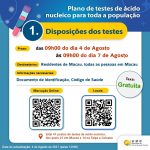 O Centro de Coordenação de Contingência do Novo Tipo de Coronavírus informa que de modoa aperfeiçoar as medidas do código de saúde, com vista a facilitar os residentes que necessitem de entrar e sair de Macau, o resultado de teste de ácido nucleico para todos os residentes pode servir para a passagem fronteiriça.