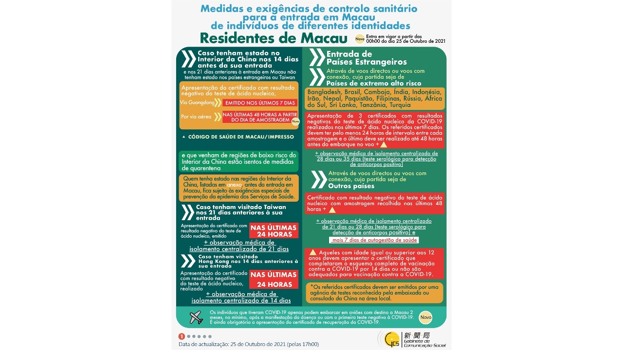 (Infografia)Medidas e exigências de controlo sanitário para a entrada em Macau de indivíduos de diferentes identidades, actualizadas no dia 1 de Novembro de 2021