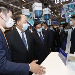 Chefe do Executivo, Ho Iat Seng e convidados visitam a "Beyond International Technology Innovation Expo".