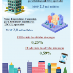 Os novos EHHs cuja garantia é dada por edifícios em construção (empréstimos hipotecários para alienação de fracções autónomas em edifícios em construção) decresceram 47,6% para MOP204,4 milhões, em relação ao mês anterior. Em comparação com período homólogo de 2020, estes novos EHHs decresceram 41,5%.