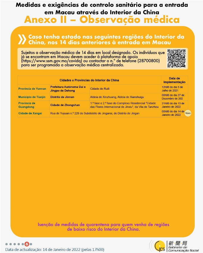 (Infografia)Medidas e exigências de controlo sanitário para a entrada em Macau de indivíduos de diferentes identidades, actualizadas no dia 14 de Janeiro de 2022