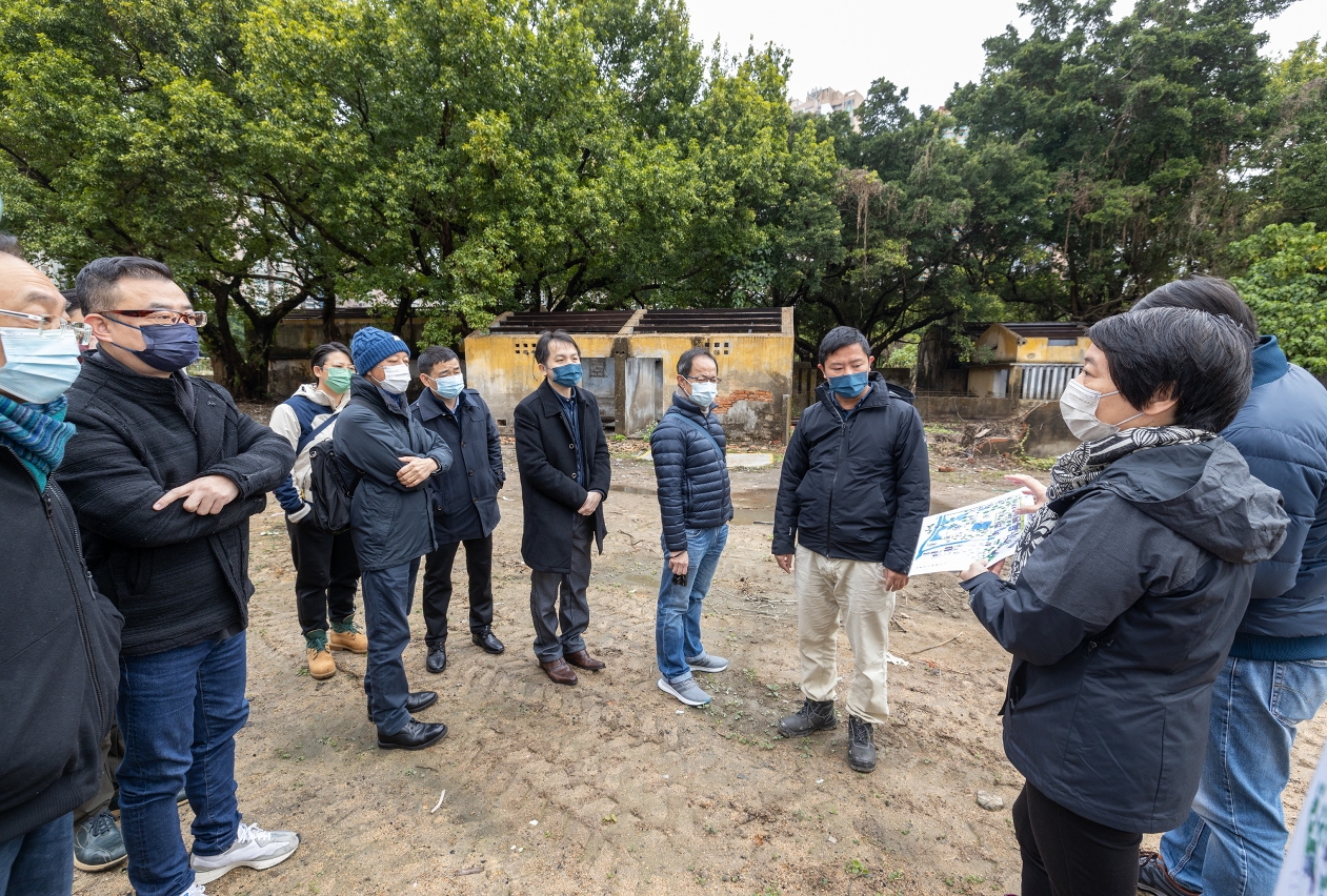 A presidente do Instituto Cultural, Leong Wai Man e o chefe do Departamento do Património Cultural, Choi Kin Long, acompanharam os membros para visitar a Antiga Fábrica de Panchões Iec Long e apresentar a sua situação atual