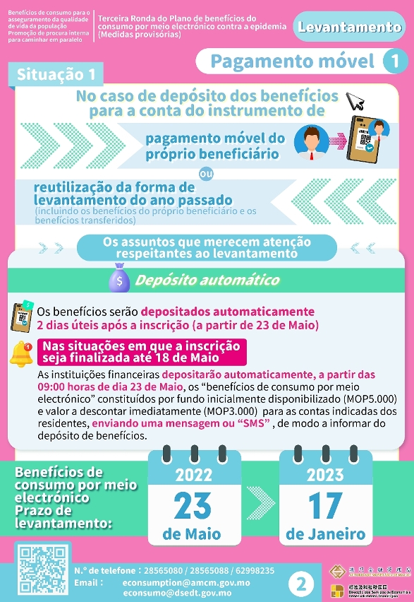 Como a inscrição sobre os “benefícios de consumo por meio electrónico” começou já a 10 de Maio, a Direcção dos Serviços e Desenvolvimento Tecnológico (DSEDT) e a Autoridade Monetário de Macau (AMCM) lançaram, antes do período de inscrição, o primeiro conjunto de infografias e vídeos curtos que apresentam, de forma simples e clara, a ideia, o calendário, os processos de inscrição, os assuntos que merecem a atenção para a utilização dos benefícios e outros assuntos no que diz respeito ao Plano.