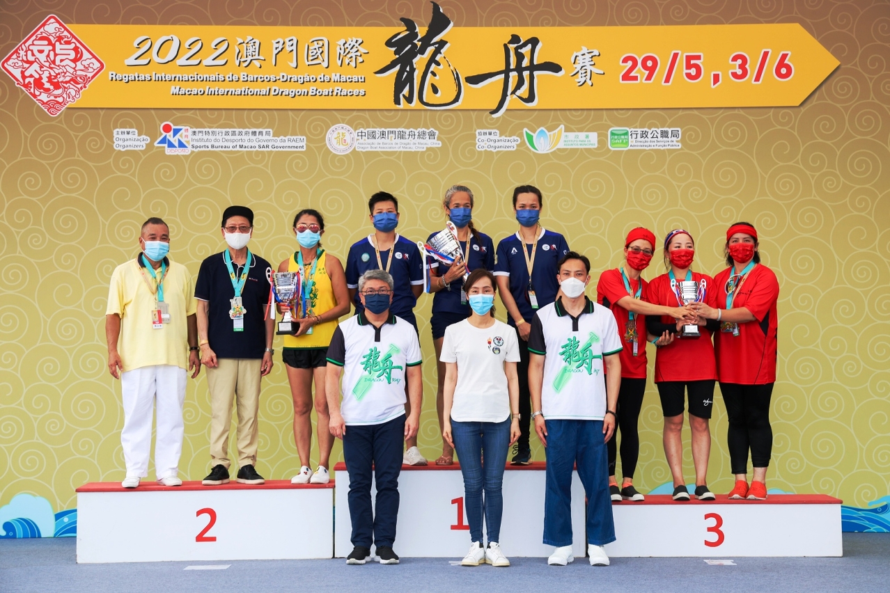 As “Regatas Internacionais de Barcos-Dragão de Macau 2022”, organizadas pelo Instituto do Desporto e pela Associação de Barcos de Dragão de Macau, China, e co-organizadas pelo Instituto para os Assuntos Municipais e pela Direcção dos Serviços de Administração e Função Pública, tiveram lugar hoje no Festival de Barcos-Dragão (3) no Centro Náutico da Praia Grande, em que se realizaram as provas para Grandes Embarcações das categorias Open e Senhoras – 500m. Após a concorrência entre as equipas, SJM Golden Jubilee e Association of Macao Youth Development ficaram no 1.º lugar na Regata de Barcos-Dragão de Macau para Grandes Embarcações – CategoriaOpene Categoria Senhoras, respectivamente. O Chefe do Executivo da Região Administrativa Especial de Macau Sr. Ho Iat Seng esteve presente neste evento para apreciar as provas, proceder à vivificação dos barcos-dragão e à entrega de prémios, festejando a Festividade de Tung Ng com a população.
