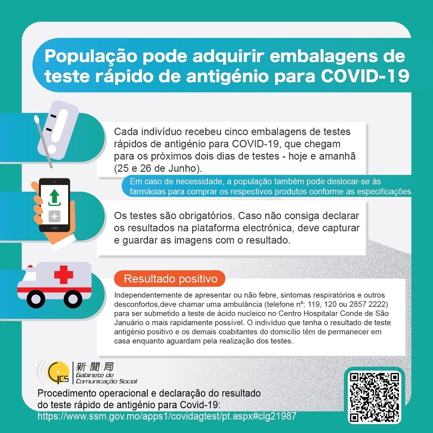População pode adquirir embalagens de teste rápido de antigénio para COVID-19