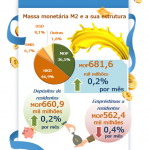 Quando comparado com o mês anterior, a circulação monetária cresceu 1,3%, mas os depósitos à ordem decresceram 3,6%. M1, assim, decresceu 2,2%, relativamente ao mês anterior. Por outro lado, as responsabilidades quase monetárias cresceram 0,5%. A soma destes dois elementos, ou seja, M2, cresceu 0,2% relativamente ao mês anterior, tendo atingido MOP681,6 mil milhões. Quando comparado com o período homólogo de 2021, M1 e M2 decresceram 6,3% e 1,2%, respectivamente. A proporção da pataca (MOP), dos dólares de Hong Kong (HKD), dos renminbi (RMB) e dos dólares dos Estados Unidos (USD) registou os “pesos” de 36,5%, 46,9%, 6,7% e 8,1%, respectivamente, em M2.