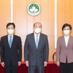 Chefe do Executivo, Ho Iat Seng, testemunha a cerimónia de assinatura do acordo de cooperação entre a Secretaria para os Assuntos Sociais e Cultura da Região Administrativa Especial de Macau e Peking Union Medical College Hospital.