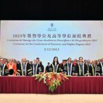 The University of Macau (UM) today (2 December) held the Ceremony for the Conferment of Honorary and Higher Degrees 2023. During the ceremony, the university conferred honorary doctorates on five distinguished individuals: Prof Cai Fang, Prof Leong Kam Weng, Prof Ching-Ping Wong, Prof Franco Maloberti, and Prof William Shiyuan Wang, in recognition of their outstanding achievements and significant contributions to society.