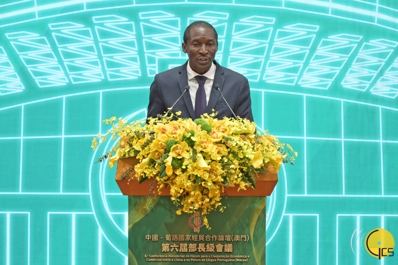 Cerimónia de Abertura da VI Conferência Ministerial do Fórum para a Cooperação Económica e Comercial entre a China e os Países de Língua Portuguesa (Macau), realizada no Complexo da Plataforma de Serviços para a Cooperação Comercial entre a China e os Países de Língua Portuguesa.