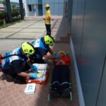 Depois do alarme, o CB enviou logo 6 veículos de socorro e emergência e 24 elementos ao local para proceder à extinção do fogo, desenvolver as acções de evacuação, busca e salvamento de acordo com o plano de socorro estabelecido, executar a enfermagem preliminar junto desse ferido e simular transportar-lhepara o hospital.