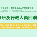 Aceitam-se, a partir de 22 de Novembro, as candidaturas ao “Programa do prémio para pessoal docente, investigador e administrativo que regressa a Macau para trabalhar num curto prazo” do ano de 2024
