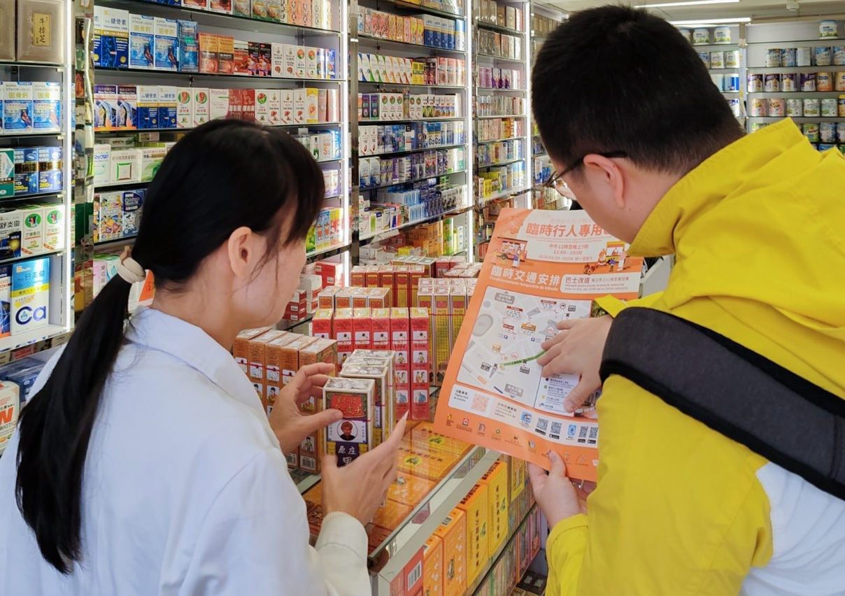 A DSEDT enviou pessoal para distribuir folhetos aos moradores e estabelecimentos comerciais da zona e afixar cartazes na mesma zona, explicando as medidas provisórias de alteração do trânsito, lembrando aos residentes que façam uma boa preparação com antecedência. No decurso da implementação da zona pedonal temporária, será disponibilizado, nos locais indicados do bairro antigo da Taipa, o serviço de ida e volta entre as paragens de autocarro temporárias utilizando veículos de sete lugares para transportar os moradores com dificuldades de mobilidade, podendo o respectivo pormenor ser consultado na Associação de Moradores da Taipa.