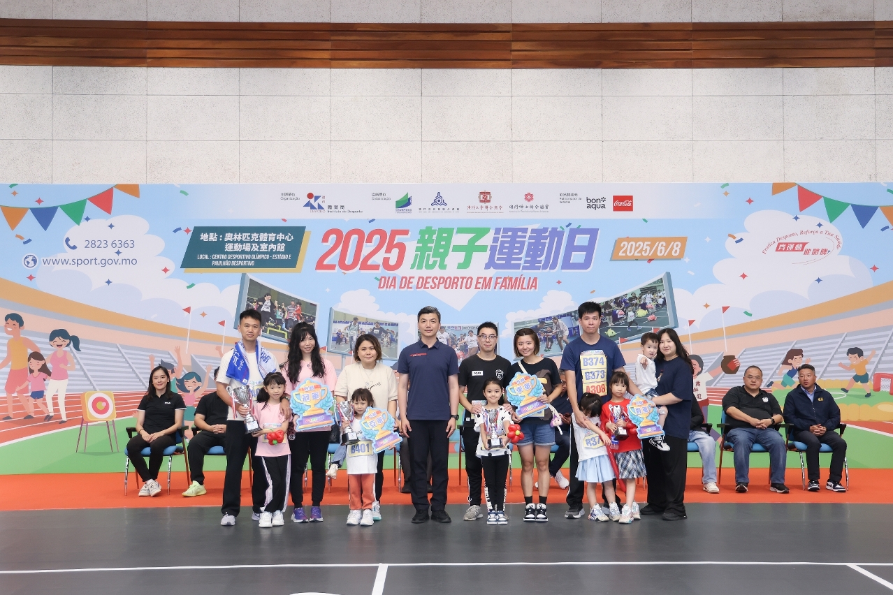 No intuito de incentivar os pais a participarem em conjunto com os seus filhos nas actividades em família, criar uma boa interacção entre pais e filhos e estreitar as suas relações, realizou-se hoje (dia 8), no Estádio e Pavilhão Desportivo do Centro Desportivo Olímpico, o “Dia de Desporto em Família 2025”, organizado pelo Instituto do Desporto, em colaboração com a Direcção dos Serviços de Educação e de Desenvolvimento da Juventude, a União Geral das Associações dos Moradores de Macau, a Federação das Associações dos Operários de Macau e a Associação Geral das Mulheres de Macau. O evento contou com a participação de muitas famílias de diversos bairros comunitários, as quais passaram juntos um tempo divertido e saudável. No evento, os pais e filhos cooperaram entre si, realizaram uma série de competições recreativas e desportivas em grupos, participaram e divertiram-se muito nos jogos recreativos e desportivos no local, impressionando o evento com momentos calorosos e animados.