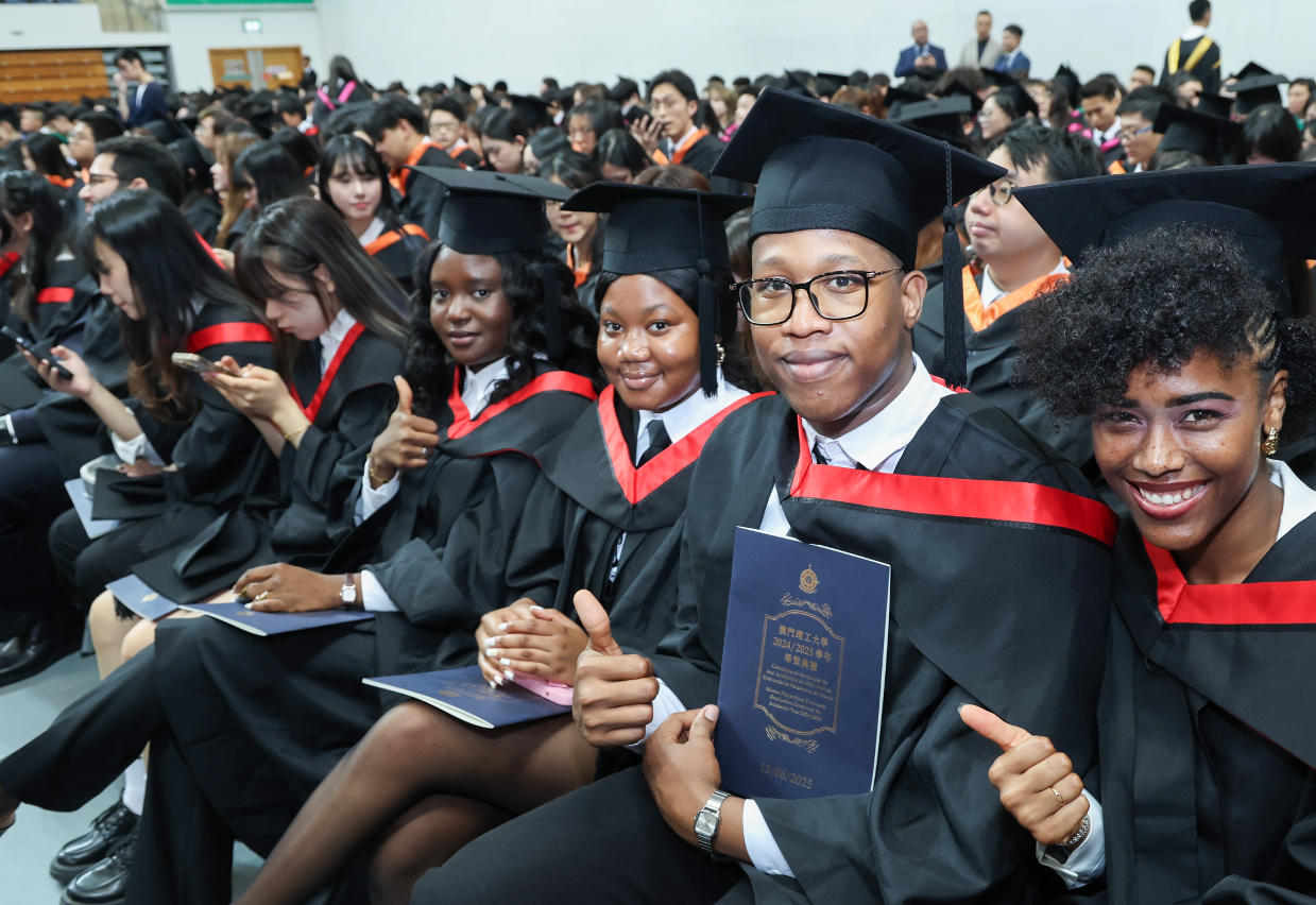 A Cerimónia de Graduação do Ano Académico de 2024/2025 da Universidade Politécnica de Macau (UPM) teve lugar hoje (12 de Junho), pelas 16h00, no Pavilhão Polidesportivo da UPM. A Cerimónia começou com o hastear da Bandeira Nacional e com a execução instrumental e vocal do Hino Nacional da República Popular da China. Graduaram-se mais de 1 500 alunos de cursos de doutoramento, mestrado e licenciatura, iniciando uma nova etapa da vida. No seu discurso, a Secretária para os Assuntos Sociais e Cultura do Governo da Região Administrativa Especial de Macau (RAEM), O Lam, reconheceu o contributo da UPM para a construção e expansão da “Plataforma Sino-Lusófona”.