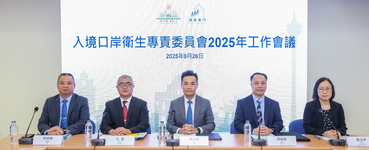 A Comissão Especializada de Saúde para os Pontos de Entrada, reorganizada em conformidade com o Regulamento Administrativo n.º 30/2024 e integrado na Comissão para a Cidade Saudável, realizou recentemente a sua primeira reunião de trabalho, presidida pelo seu coordenador, o Director dos Serviços de Saúde, Lo Iek Long. A Comissão utilizará esta plataforma para reforçar a comunicação e a colaboração interdepartamental, integrar a alocação de recursos e promover os objectivos de um ambiente seguro e saudável e de uma população saudável e longeva, caminhando para a visão de um "Macau Saudável".