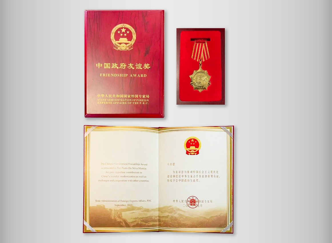 A cerimónia de entrega do Prémio de Amizade do Governo Chinês de 2025 teve lugar no dia 30 de Setembro no Grande Palácio do Povo. Rui Martins, Vice-Reitor da Universidade de Macau (UM) e Director do Instituto de Microeletrónica, foi distinguido com o Prémio de Amizade do Governo Chinês e esteve presente nessa cerimónia para receber o galardão. Este prémio é a mais alta distinção nacional atribuída pelo Governo Chinês a especialistas estrangeiros que trabalham na China, como forma de reconhecimento pelas suas contribuições significativas para o desenvolvimento e promoção da cooperação internacional.