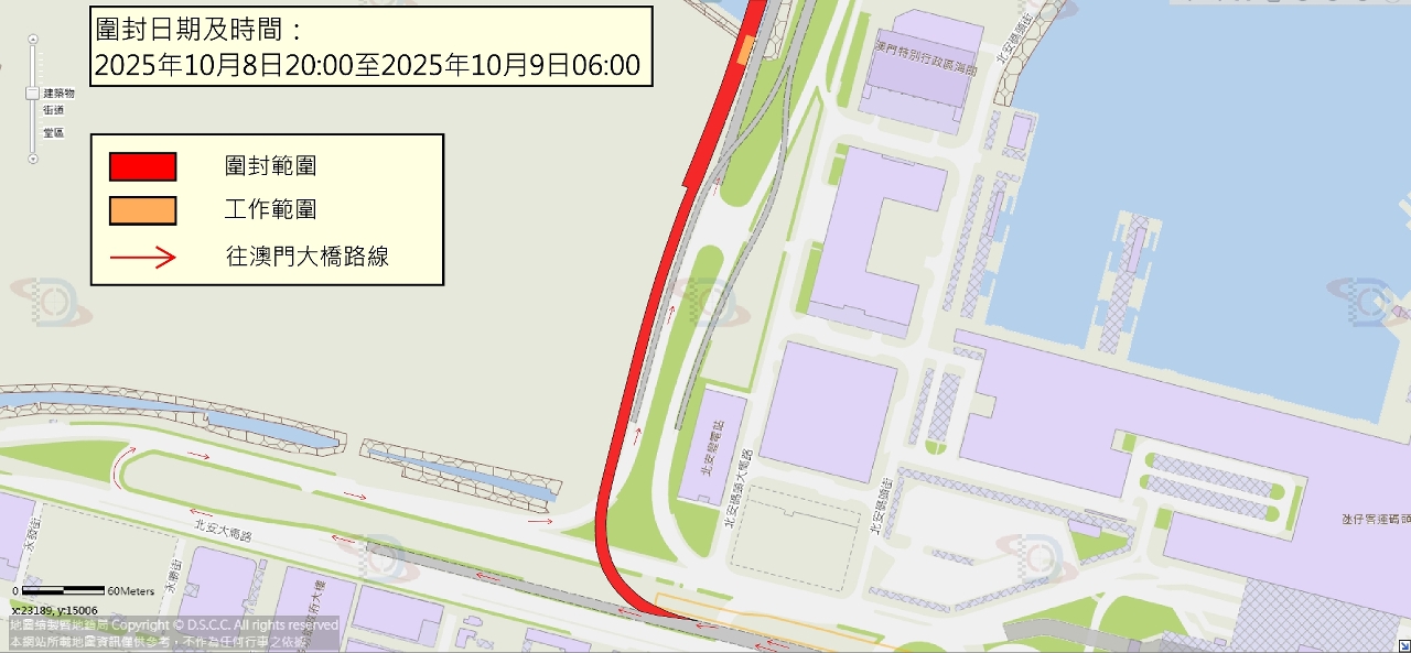 • De 04h00 às 06h00: Proibição de acesso na Ponte de Macau, junto à ponte de acesso que liga à Avenida Wai Long.