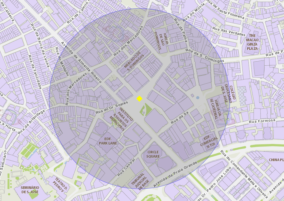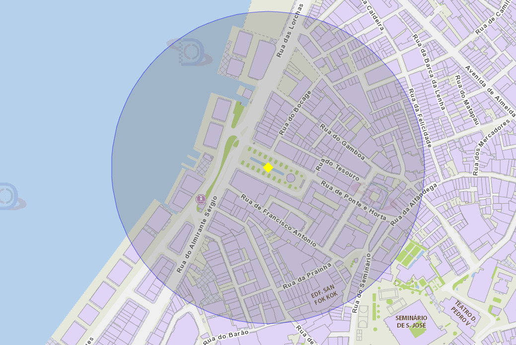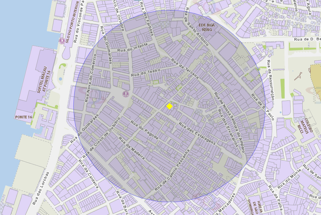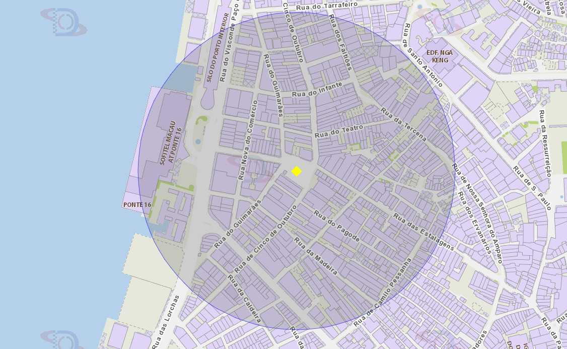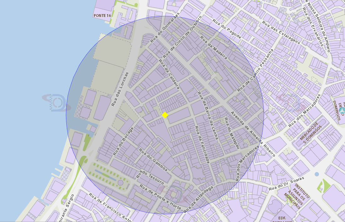 A área de risco com um raio de 200 metros, delimita a zona da Travessa do Armazém Velho, n.ºs 19-23, Edfício Sak I