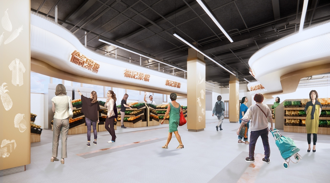 Quanto às instalações e equipamentos, planeia-se instalar elevadores sem barreiras e sala de amamentação, optimizando os equipamentos de iluminação do mercado, e melhorar o sistema de drenagem de águas residuais e de ventilação. Ao mesmo tempo, será construído um corredor com ligação ao auto-silo do Edifício Toi Fai, e reservada uma junção na passagem superior para a futura ligação com o Parque Desportivo para os Cidadãos, a ser construído, de modo a produzir efeitos multiplicativos em vários aspectos e criar um espaço diversificado com uma atmosfera vivencial mais activa, elevando assim o dinamismo do bairro comunitário.