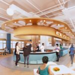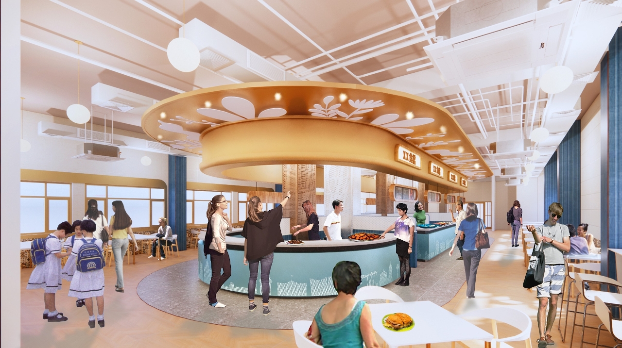 No que diz respeito à concepção espacial, serão mantidas as entradas e saídas originais, alargados os acessos públicos e aumentada a área das bancas, criando assim um ambiente de negócios mais confortável e melhores linhas de movimentação de compras. Em particular, as bancas de venda de peixe serão organizadas com espaço seco e húmido separado, diferenciando a zona de venda e a zona de logística, e serão instalados painéis frontais em frente à mesa de venda para impedir a difusão de água. As zonas de venda de vegetais e frutas foram concebidas de forma curva, aumentando o espaço visual e a flexibilidade na exposição dos produtos. No centro de comidas do 1.º andar, para além das bancas de comidas confeccionadas, há ainda bancas de tipo “ilha aberta” para a exploração de comidas ligeiras, proporcionando um ambiente diversificado e limpo aos operadores e consumidores.