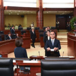 Presidente da VIII Assembleia Legislativa da Região Administrativa Especial de Macau, André Cheong, preside à reunião plenária da Assembleia Legislativa, onde foram eleitos o vice-presidente, o primeiro secretário e o segundo secretário da Assembleia Legislativa.