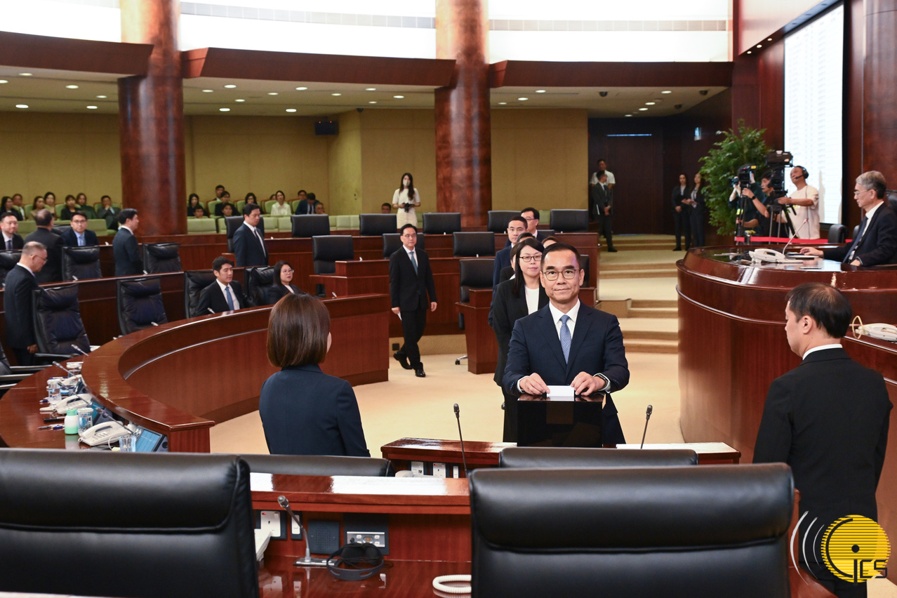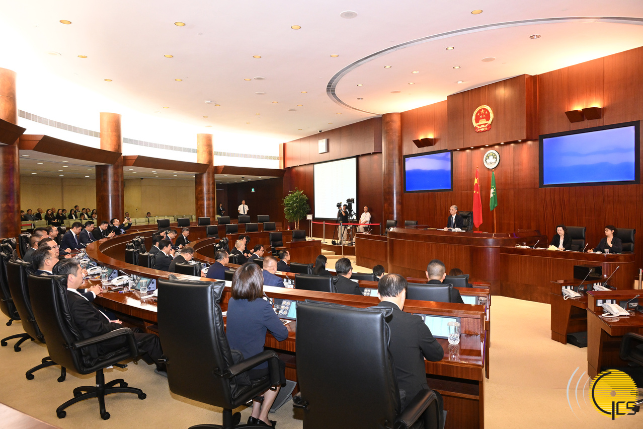 Presidente da VIII Assembleia Legislativa da Região Administrativa Especial de Macau, André Cheong, preside à reunião plenária da Assembleia Legislativa, onde foram eleitos o vice-presidente, o primeiro secretário e o segundo secretário da Assembleia Legislativa.