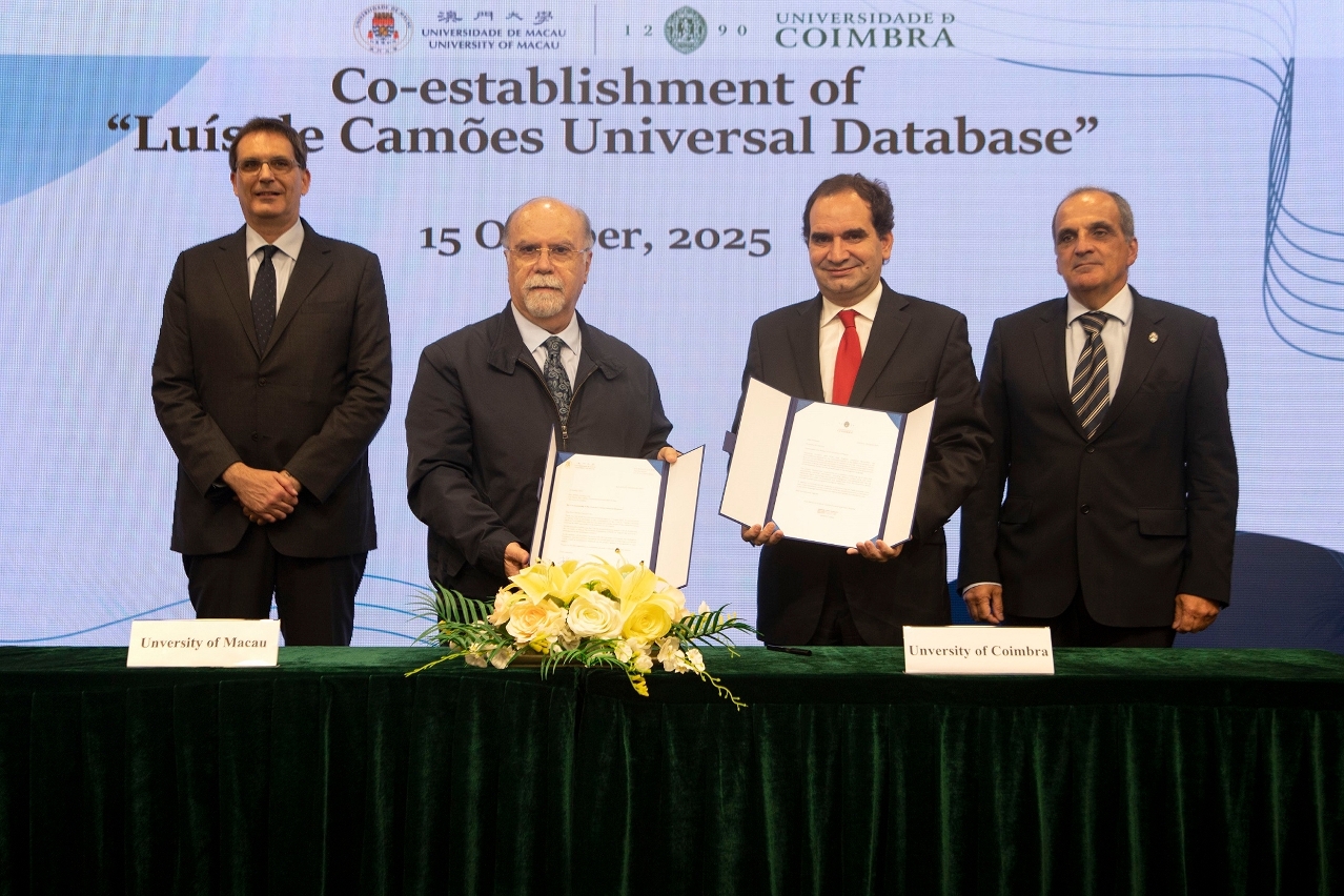 A Universidade de Macau (UM) e a Universidade de Coimbra realizaram a cerimónia de adesão à Cátedra UNESCO em Diálogo Intercultural em Patrimónios de Influência Portuguesa, assinalando a entrada formal da UM no projecto da Cátedra UNESCO lançado pela Universidade de Coimbra. Esta colaboração não só reforça os laços da UM com instituições de ensino superior dos países de língua portuguesa (PLP), como também imprime uma nova dinâmica no desenvolvimento da investigação sobre património cultural e na promoção do intercâmbio académico internacional em Macau.