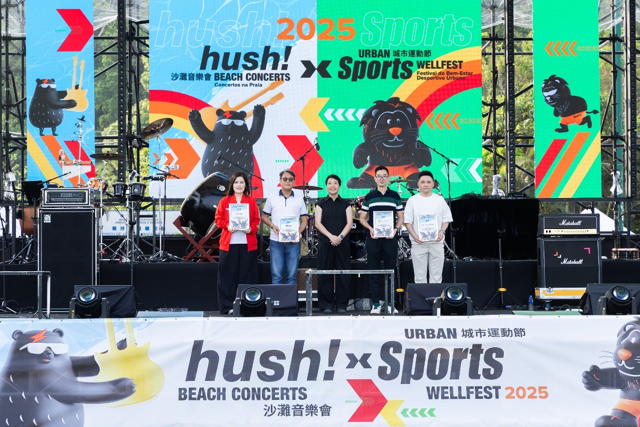 Organizado conjuntamente pelo Instituto Cultural (IC) e pela MGM, em colaboração com o Instituto para os Assuntos Municipais, a Direcção dos Serviços de Assuntos Marítimos e de Água e a Direcção dos Serviços de Turismo, o evento “hush! Concertos na Praia x Festival do Bem-Estar Desportivo Urbano 2025” realizou-se nos dias 18 e 19 de Outubro, na Praia de Hac Sá e na Zona de Lazer Temporária de Hac Sá, sendo realizado hoje (19 de Outubro) a Cerimónia de Entrega de Prémios do Concurso de Curtas-metragens de Vídeo “hush! 300 Segundos”. Numa maratona musical ao ar livre de dois dias consecutivos, mais de 30 instrutores asiáticos defitnesse ioga de renome e cerca de 60 bandas, músicos e artistas locais e internacionais, proporcionam diversas sessões de ginástica e apresentações musicais.